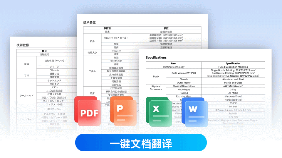 一键翻译全文,精准保持原文排版格式,支持pdf/doc/docx/excel/ppt/txt等格式